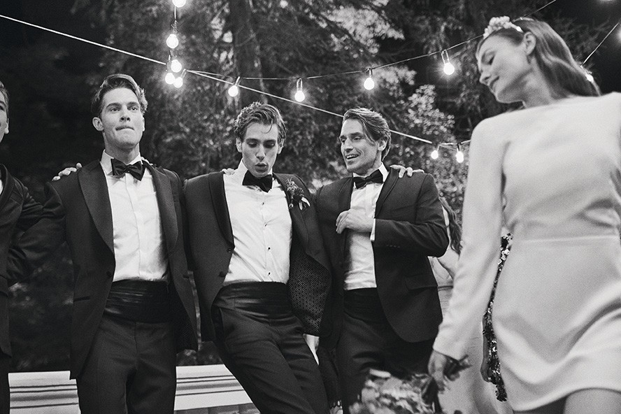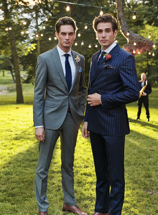 Casual style na weselach czy rodzinnych przyjęciach pojawia się coraz częściej. Panowie kompletujący stylizację na ślub przyjaciół, komunię lub chrzciny śmiało mogą wybierać garnitur z wyraźną fakturą lub wzorem. Vistula proponuje między innymi slimowany zestaw w szarym kolorze w beżowo-błękitną kratą lub tonalny look z błękitem. Taki garnitur dobrze podkreśli sylwetkę i doda mężczyźnie nonszalancji. Do dopełnienia stylizacji wystarczy biała koszula z rozpiętym guzikiem, ulubiony pasek i skórzane buty oraz podkreślająca kolor oczu jedwabna poszetka.