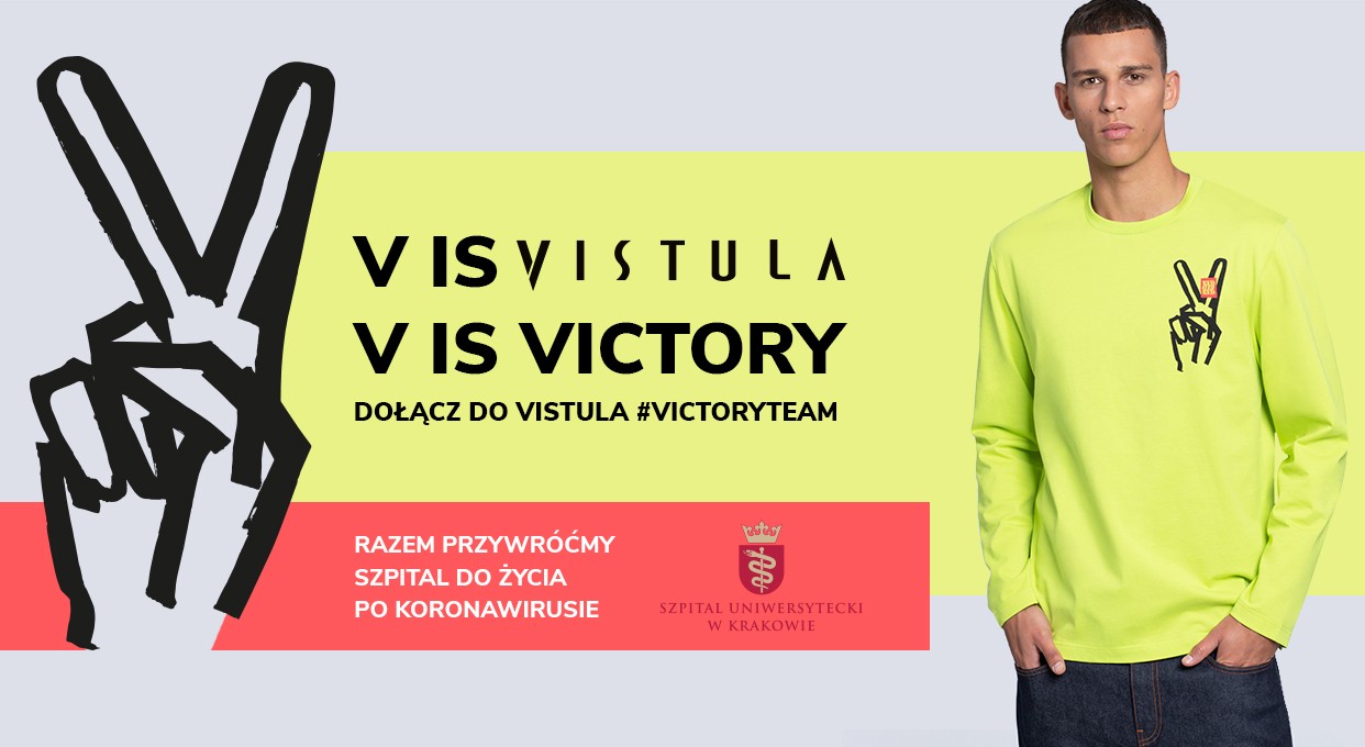 Razem możemy zmienić rzeczywistość i sprawić, aby powrót do życia po koronawirusie był prostszy! Właśnie ruszyła akcja w ramach której VISTULA przekaże 50% przychodu ze sprzedaży produktów z symbolem V, Szpitalowi Uniwersyteckiemu w Krakowie. Dołącz do #VICTORYTEAM i przekonaj się, jak wiele zależy od Ciebie.