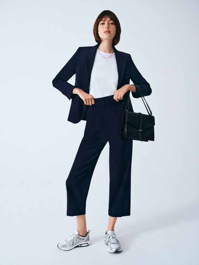 Nie trzeba mieć wypełnionej po brzegi szafy, by móc tworzyć wiele ponadczasowych i modnych stylizacji. VISTULA Woman pokazuje, jak wprowadzić tę zasadę w życie. Jednym z kluczowych looków są garnitury z wełny super 110’s w modnych w tym sezonie odcieniach magenty i kobaltu. Ich uniwersalny krój sprawia, że będą świetnie wyglądać w połączeniu zarówno z elegancką koszulą i szpilkami, jak również T-shirtem z bawełny organicznej lub prążkowanym sweterkiem z wełny merino zestawionych z trampkami czy sneakersami. Marynarkę można zestawić z jeansami mom fit z dodatkiem bawełny z recyklingu, czarnymi cygaretkami lub wełnianymi spodniami typu culotte – to sprawi, że stylizacja stanie się mniej zobowiązująca. Wśród wiosennych okryć wierzchnich, VISTULA poleca minimalistyczną pikowaną kurtkę bez kołnierza lub klasyczną skórzaną ze stójką. Całość warto dopełnić skórzanymi dodatkami: klasycznymi mokasynami, niewychodzącymi z mody kowbojkami oraz ulubionym paskiem i torebką.