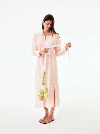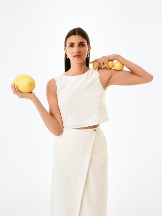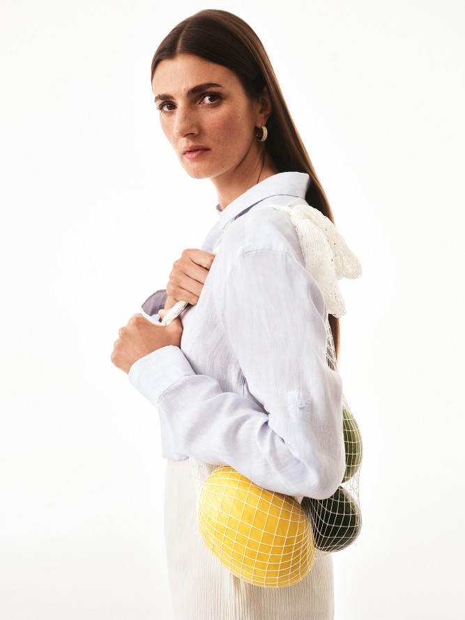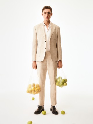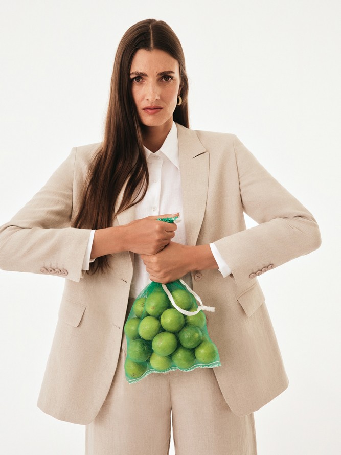 W damskiej odsłonie kolekcji znajduje się lniany komplet, który zgodnie z założeniami szafy kapsułowej, jest świetną bazą do różnorodnych stylizacji. W zestawie będzie współgrać z uniwersalnym białym T-shirtem lub łososiową koszulą z lnem. Można go również nosić osobno; marynarka będzie stanowiła idealne dopełnienie koszulowej sukienki, a spodnie carrot zastąpią wygodne szorty z zakładkami. Całość dopełnią wygodne mokasyny, sandały lub klapki.