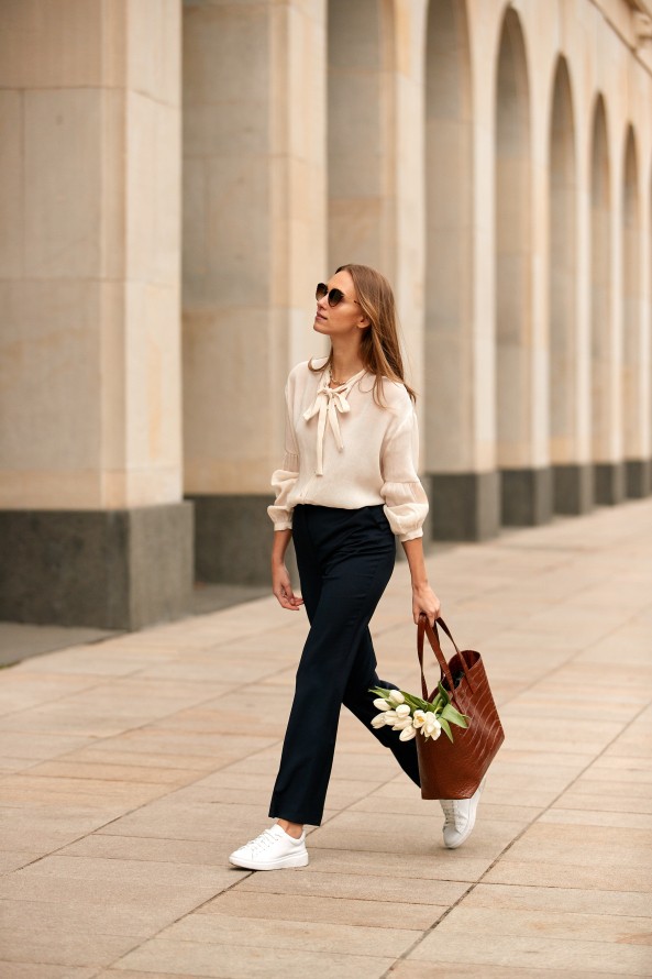 Uwielbiana przez kobiety zasada mix and match, sprawdzi się przy każdym z produktów oferowanych przez markę VISTULA. Klasyczne modele koszul dostępne są w wersji białej i czarnej. Luźne lub dopasowane w talii z niewielkim kołnierzykiem i mankietem, wykonano z przyjemnej tkaniny z dyskretnym połyskiem. Inną propozycją są dostępne w trzech kolorach (ecru, szarość, brudny róż) bluzki ze stójką oraz wiązaniem pod szyją i poszerzanymi rękawami. Model wykonano z lekkiego materiału, który idealnie sprawdzi się w ciepłe dni.
