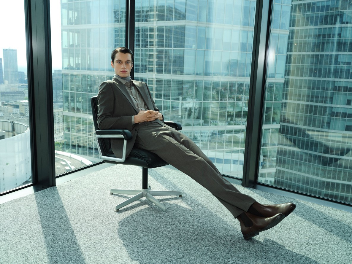Kolekcja oferuje różne elementy eleganckiego ubioru dla kobiet i mężczyzn. W męskiej części znajdują się między innymi wyprodukowane w Polsce: gładki trzyczęściowy garnitur w wełnie Super 110’s, klasyczny garnitur w jasnej, beżowo-brązowej kracie oraz strukturalna marynarka z mieszanki wełny i jedwabiu. Koszula w tonalny, diagonalny splot z powodzeniem daje się połączyć z basicowym golfem w wełnie Merino Extra Fine czy dzianinowym swetrem ze stójką. Całość dopełnią wygodne bawełniane spodnie chino oraz skórzane sztyblety.