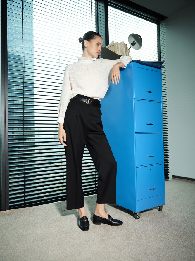 Back to business rozumiany jest tutaj szerzej jako powrót do walki o swoje przekonania, potrzeby i marzenia. Determinacja w dążeniu do celu i zaciekawienie nieznanym zderzają się z przestrzenią biurową. Surowość jej wnętrz zostaje przełamana swobodą ekspresji i nutą prowokacji w duchu office rebel attitude, które sprawdza się również w – będącym codziennością sporej części z nas – home office. Vistula dostrzega zmiany w przyzwyczajeniach swoich klientów i stawia na większą elastyczność oraz wygodę. Marka zadbała więc o klasyczne back to office, ale – w myśl hasła Set your rules – na własnych zasadach klientki i klienta: w wersji casual lub formal.