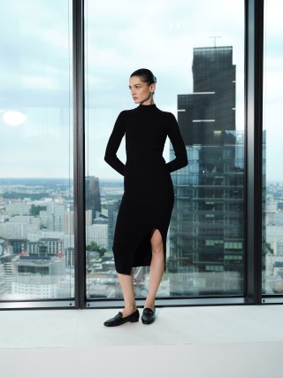 Damska odsłona to przede wszystkim zróżnicowane w kroju i wzorach zestawy garniturowe: marynarka dopasowana, minimalistyczna i bez wyłogów albo bardziej oversize’owa, cygaretki lub spodnie z szerszą nogawką. W kolekcji nie może także zabraknąć sukienki o dłuższym marynarkowym kroju. Całość podbija charakterystyczna pepita. Stylizacje uzupełniają długi płaszcz o szlafrokowym kroju z domieszką wełny przewiązany paskiem, skórzane buty na słupku i klasyczna torebka typu city bag.