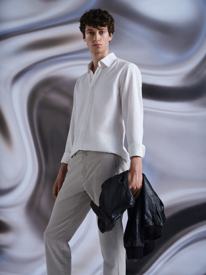 W kolekcji Let the story begin Vistula podkreśla to, z czego jest najlepiej znana, czyli ponadczasowych klasyków, takich jak wyprodukowane w Polsce garnitury czy strukturalne marynarki. Celebruje lato, prezentując idealne na upały lekkie koszule z mieszanki bawełny i lnu. Oferta zostaje urozmaicona o zadziorną skórzaną pilotkę oraz przykuwający uwagę turkusowy sweter, stanowiący mocny akcent kolorystyczny. W przejściowym pierwszym etapie znane bazowe produkty w sposób oryginalny łączą się z zapowiedzią tego, co dopiero w kolejnych miesiącach w pełni się rozwinie.