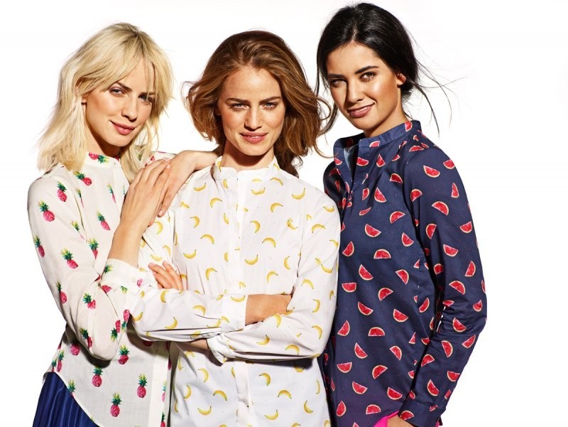 Nowością są nadruki owoców. Koszule ze stójką i krytą plisą w modne w tym sezonie motywy ananasa, arbuza, czy banana to dozwolona szczypta humoru i ekstrawagancji nawet w stroju do biura – w towarzystwie żakietu, czy garsonki. Fantastycznie wyglądać będą jednak także z dżinsami, czy w każdej nieformalnej stylizacji. Szeroką ofertę deseni dopełnia abstrakcyjny, typowo wakacyjny motyw kolorowych, rozmytych kółek, przypominający mydlane bańki, bądź balony. Przekrój nowatorskich wzorów i połączeń kolorystycznych pozwoli każdej kobiecie stworzyć własny, indywidualny styl.