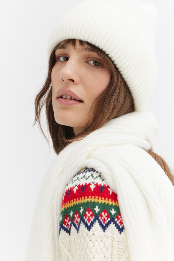Szalik, czapka lub rękawiczki wykonane z wełny merino to doskonały wybór na prezent. Wełna merino charakteryzuje się nie tylko świetną jakością, ale także zapewnia ciepło i komfort w chłodniejsze dni. Dobrym pomysłem na upominek będą także skarpetki ozdobione wzorem świątecznym.