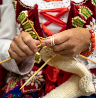 Kolekcja wełnianych akcesoriów zimowych - czapki, skarpety oraz rękawice zostały zrobione na drutach lub szydełku, zgodnie z wiedzą przekazywaną z pokolenia na pokolenie w sercu Podhala. Z dumą prezentujemy projekty Pań: Marii Zarębczan, Anny Matuszek, Władysławy Zaryckiej oraz Władysławy Rusinowicz rękodzielniczek, które szydełkowania oraz robienia na drutach uczyły się od swoich matek oraz babć, pozyskując wełnę z własnych hodowli.
