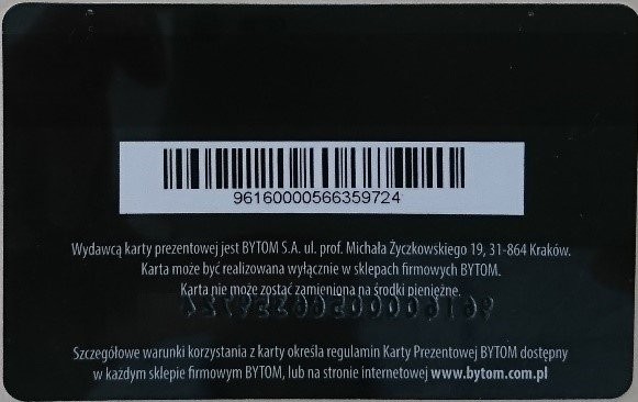 3. BYTOM Gift Cards are issued in bearer form only. They can be purchased in the Stores. The Purchaser can acquire a BYTOM Gift Card worth from PLN 50.00 to PLN 5,000.00.