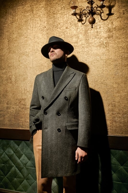 The stylizations prepared for the heroes include perfectly tailored suits with wide lapels with characteristic dressing, sewn from high quality noble texture and flannel fabrics, checked or melange in shades of navy blues, camels and browns. Suits are complemented by vests with original finishes, cotton striped shirts, knitted turtlenecks and felt hats. An important element of the collection are warm yet light coats - long cotton and fleshy double - breasted wool, in shades of black and beige. BYTOM AUTUMN-WINTER 2019 is an essence of timeless elegance, a collection in which tradition meets the vision of modern tailoring, where the art of tailoring meets the art of film and the art of life.